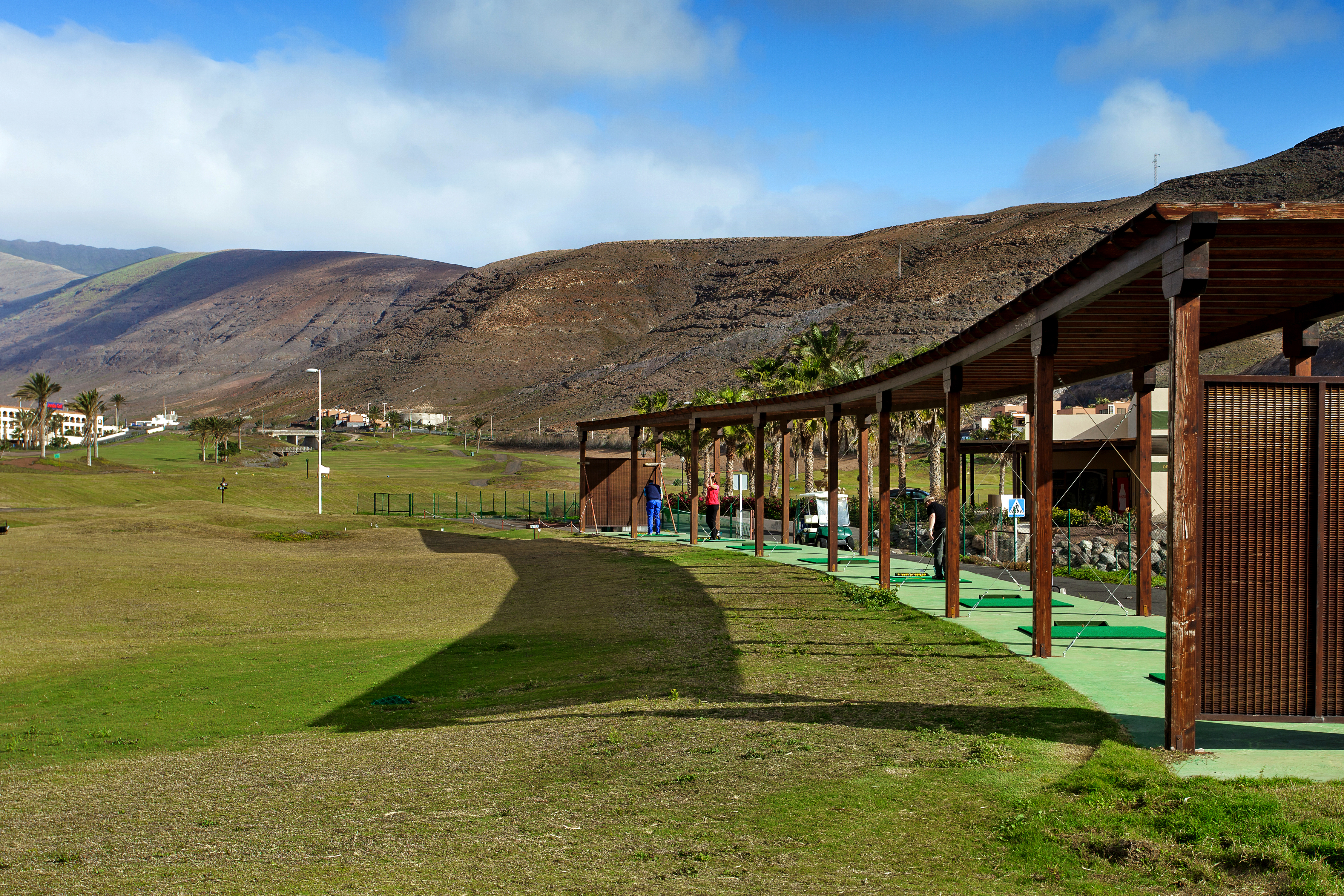 Detail Training Area Golf Practice Field With Mountains Background