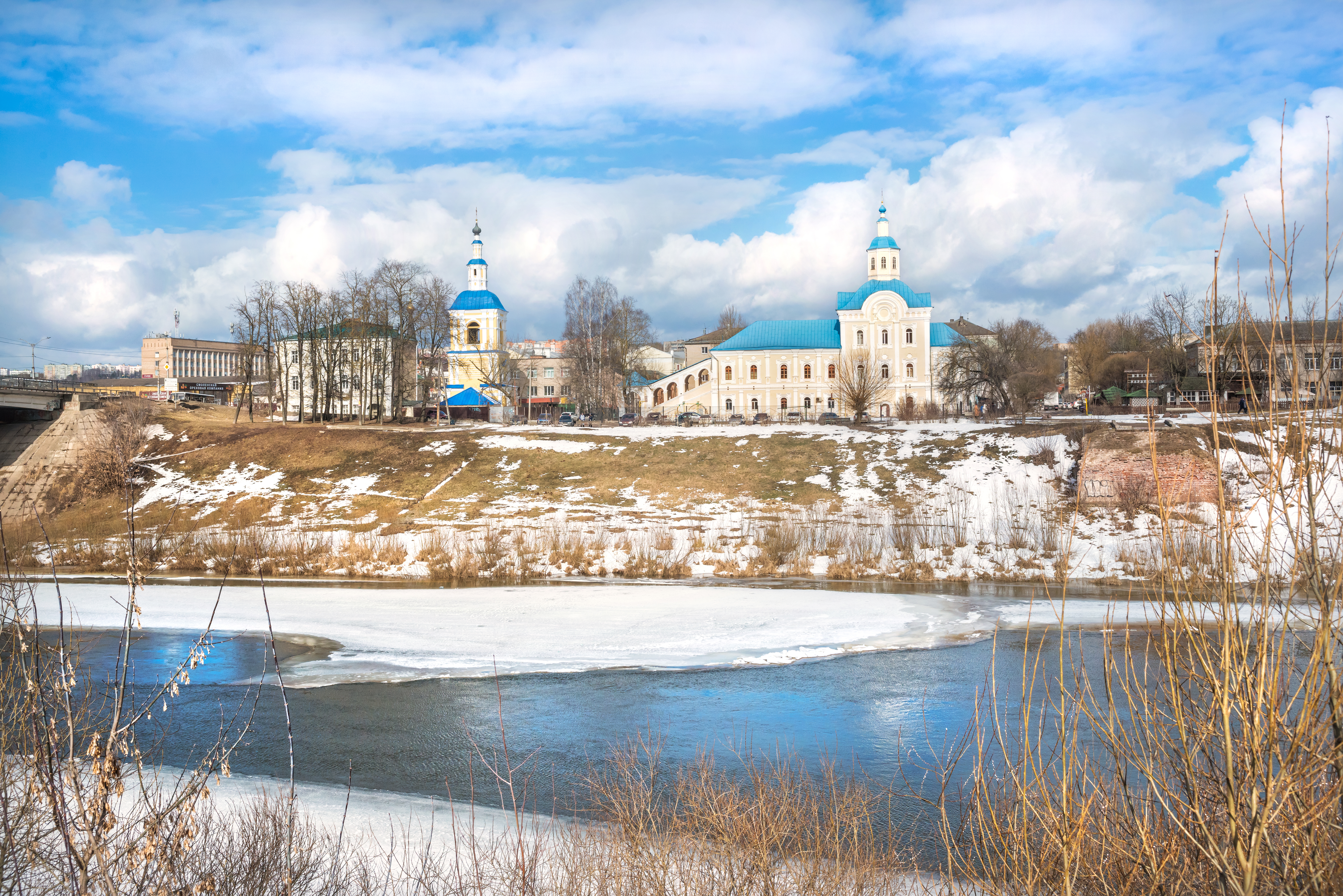 Nikolskaya Church Banks Dnieper River Smolensk Blue Spring Sky