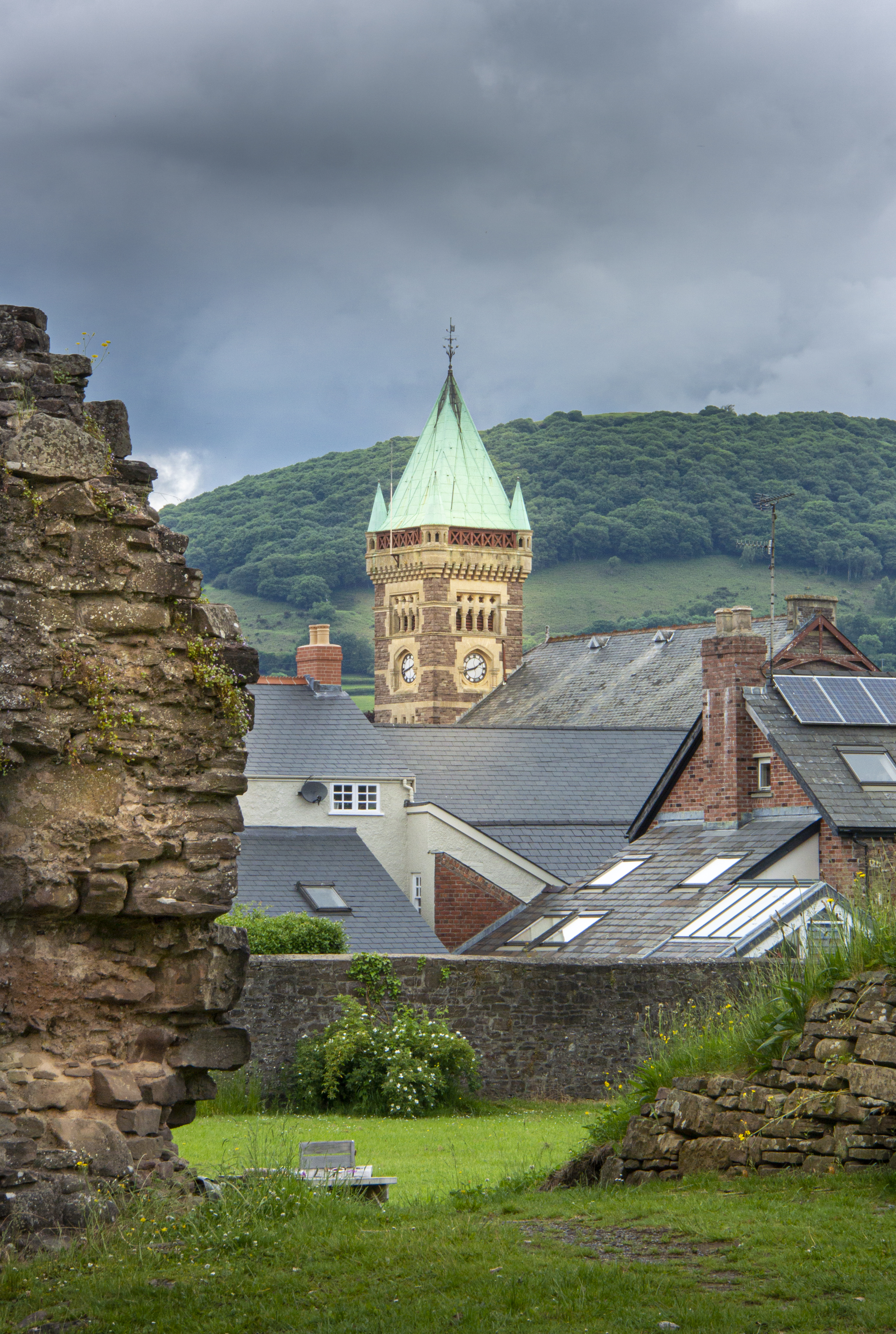 View Market Hall Clock Tower Town Abergavenny Wales Uk